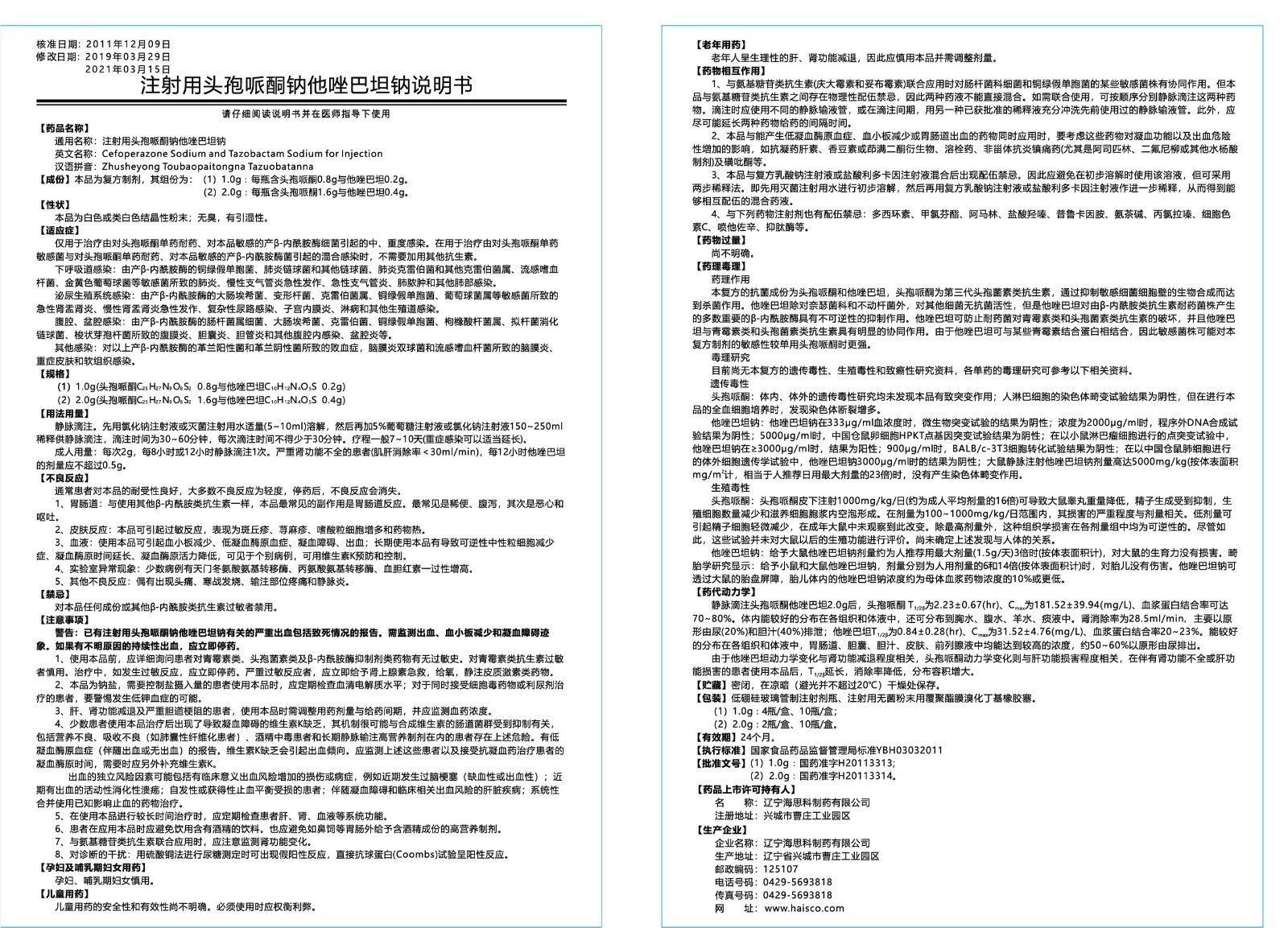 【適應癥】僅用于治療由對頭孢哌酮單藥耐藥、對本品敏感的產β-內酰胺酶細菌引起